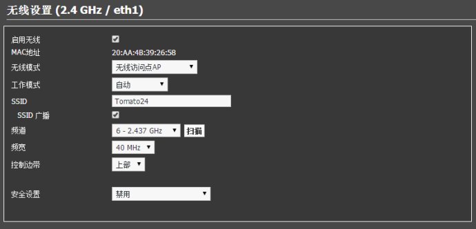 将路由器2.4G,5G频段分别设置为40HZ宽频(本人使用的是linksys E2500),这里只是做测试所以末对路由加密,如果要设置密码,格式必须选WPA2个人,算法AES