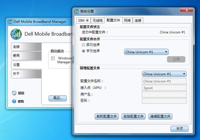 安装拨号软件,本人使用的是dell的拨号软件,无锁,设置比较简单。
