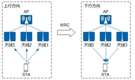 Legacy Beamforming Legacy Beamforming是将上行信号通过最大比合并MRC(Maximal Ratio Combining)合并时获得的信道信息直接应用于下行发射,从而在下行获得波束成形。这里以3根天线的AP为例说明具体的流程: