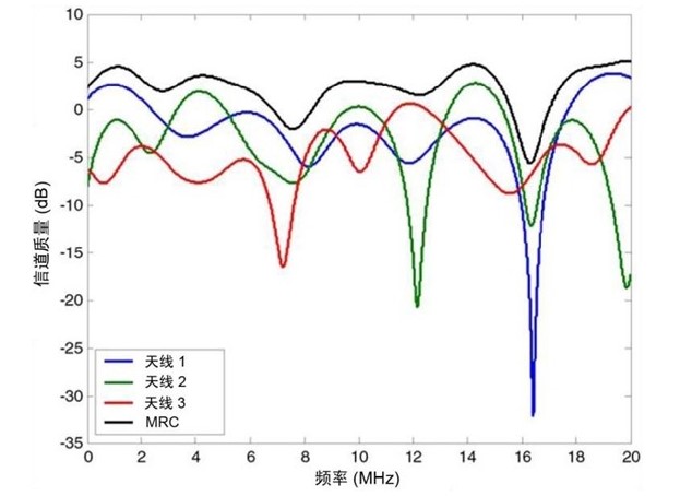 - 通过MRC将3个信号进行相位校正,并按照适当的可变增益加权再相加后送入检测器进行相干检测,将3个信号合并为一个信号。如下图所示。