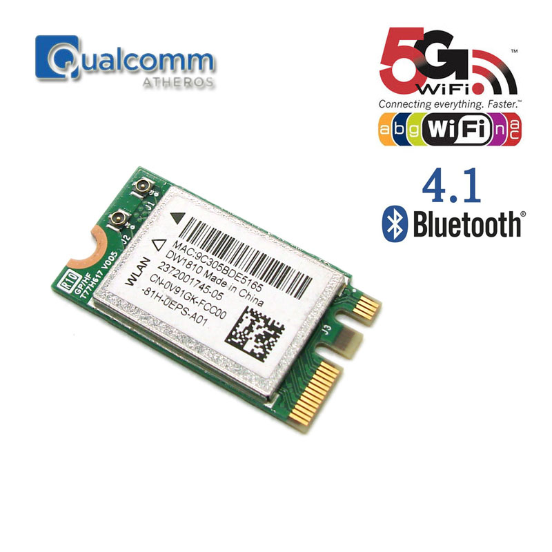 此卡来自DELL型号为DW1810,与联想一样DELL自已并不生产WiFi无线模块;供货商为美国高通Atheros,高通型号为QCNFA435此款卡IC型号为QCA9377.