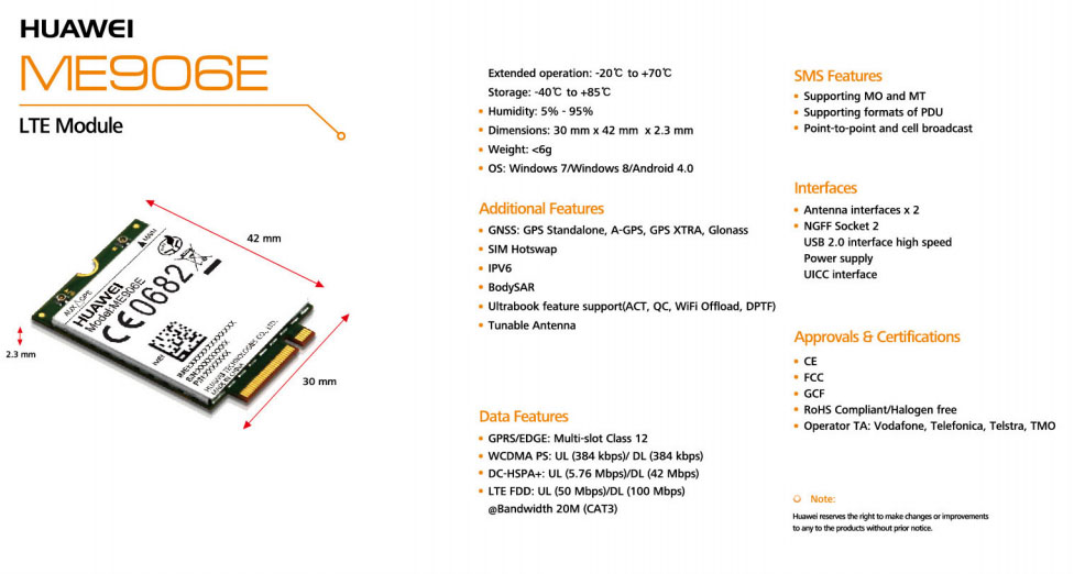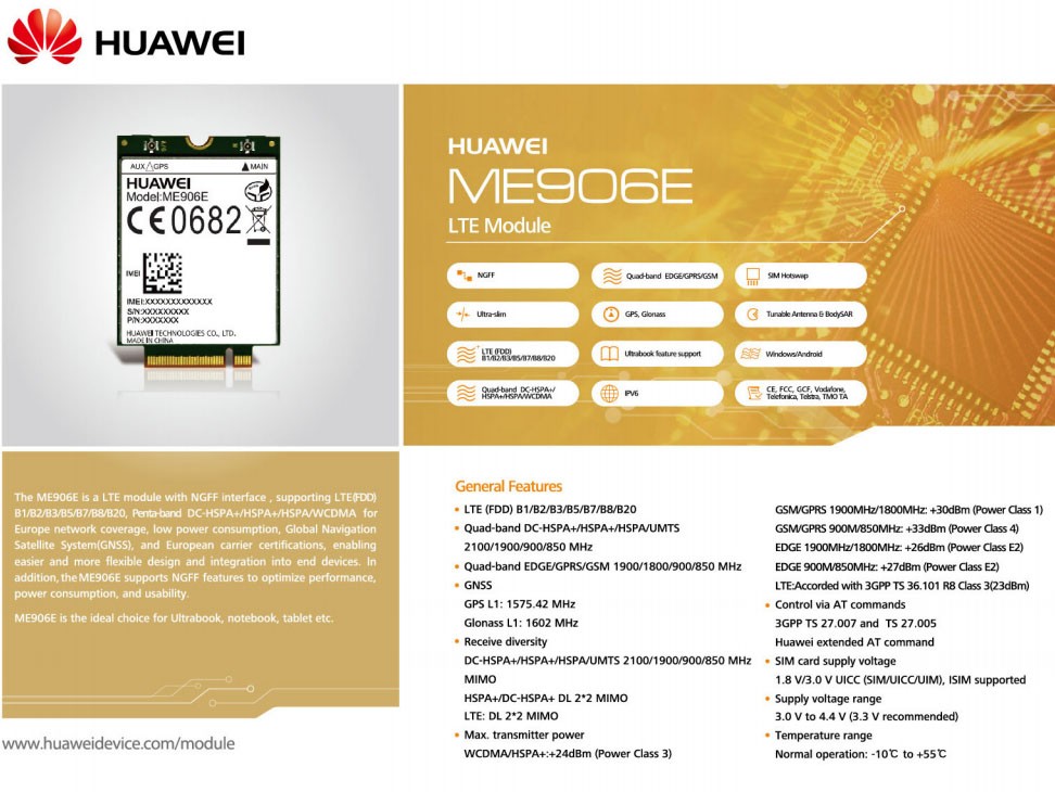 华为Me906e 4G LTE全网通无线上网模块参数与驱动