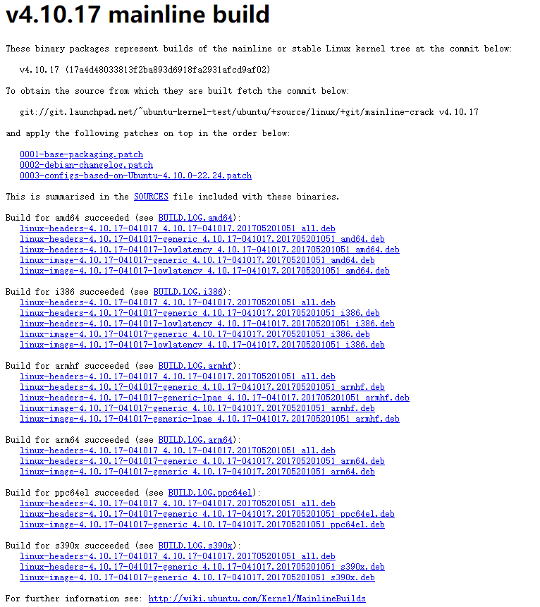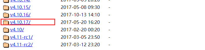 直接访问以下网址下载目标版本的kernel: https://kernel.ubuntu.com/~kernel-ppa/mainline/ 此处我下载的版本是4.10.17