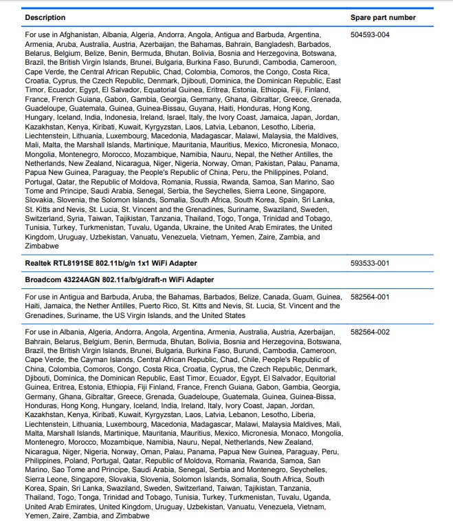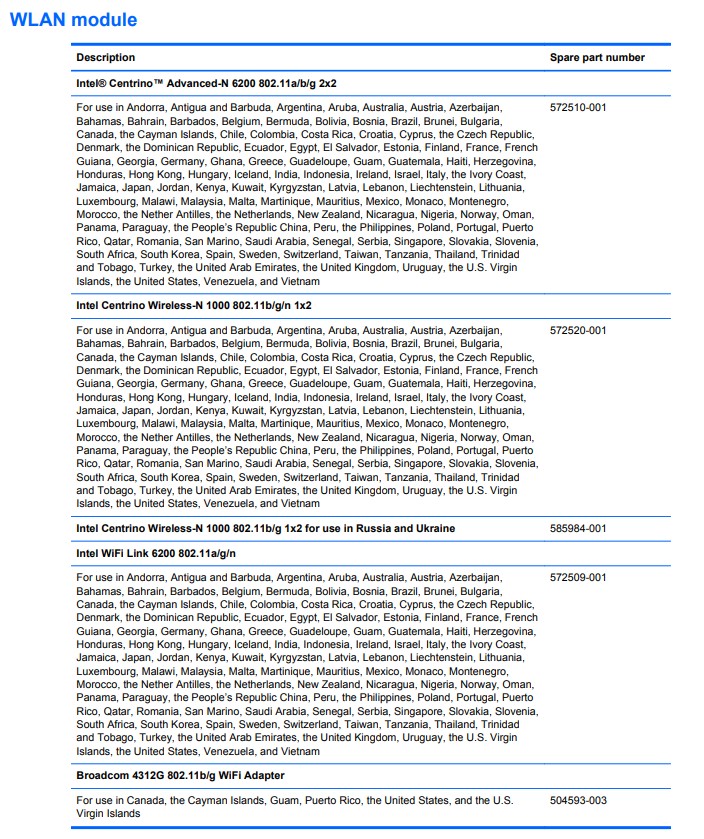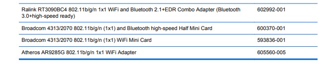 HP惠普ProBook 4320S/4321S/4420S/4421S笔记本电脑适用内置无线蓝牙模块列表