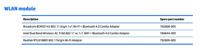 HP惠普Pavilion 14 Notebook PC (Intel CPU系列机型)适用内置无线模块列表