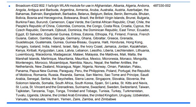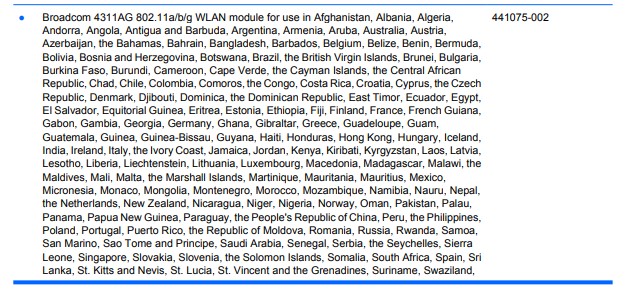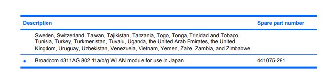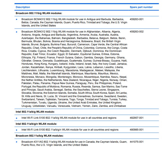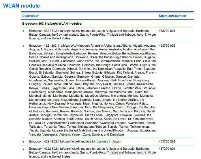 HP Compaq 6530s/6531S/6535S Notebook PC适用内置无线模块列表