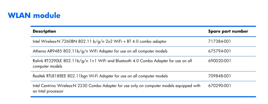HP惠普Pavilion 14-e035tx Notebook PC适用内置无线蓝牙模块列表