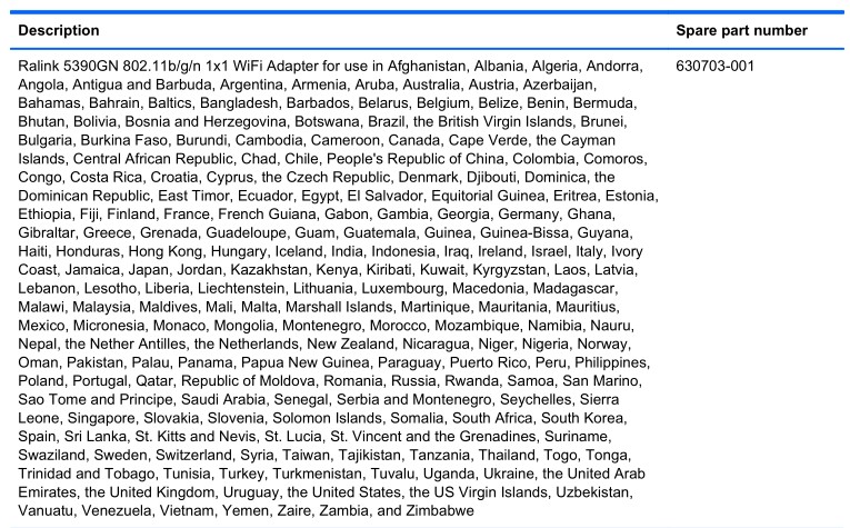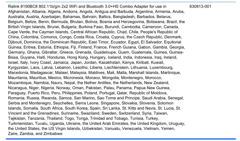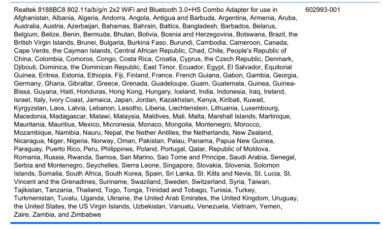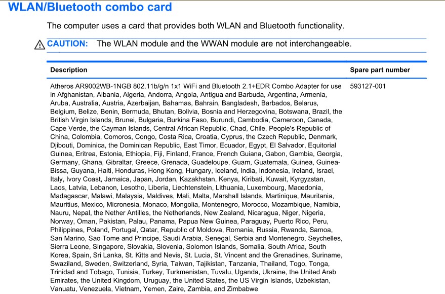 HP惠普ProBook 4430s /4431S/4330S/4331S Notebook PC适用内置无线蓝牙模块列表