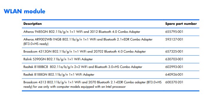 HP惠普Compaq Presario CQ43 Notebook PC适用内置无线蓝牙模块列表