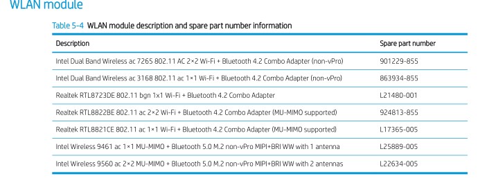 HP惠普 Pavilion 14-ce2014tx Laptop PC适用内置无线蓝牙模块列表
