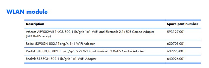 HP惠普 430 and HP 431 Notebook PC and Compaq 435 and Compaq 436 Notebook PC适用内置无线蓝牙模块列表