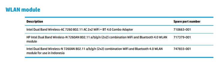 HP惠普 EliteBook Folio 9480m Notebook PC适用内置无线,蓝牙模块列表